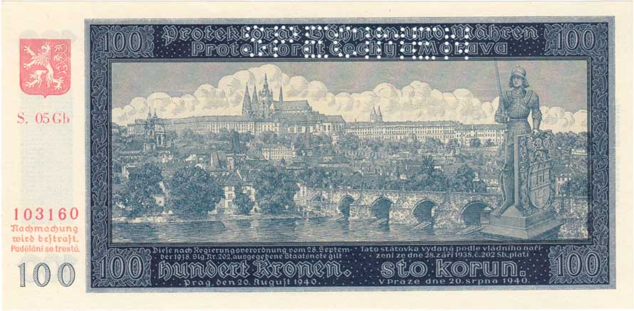3220. 100 Koruna 1940 - 2.vyd., série 05Gb, BHK.33b,