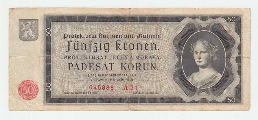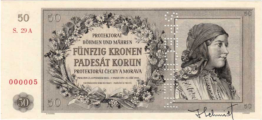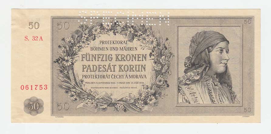 3269. 50 Koruna 1944 - série 32A, BHK.42, He.45a.s1,