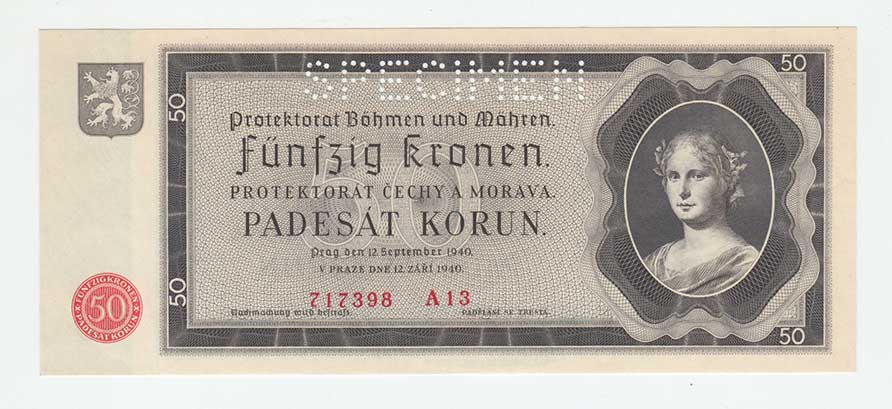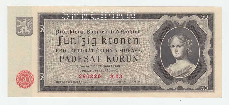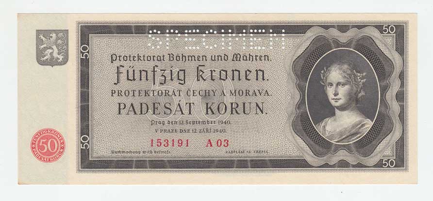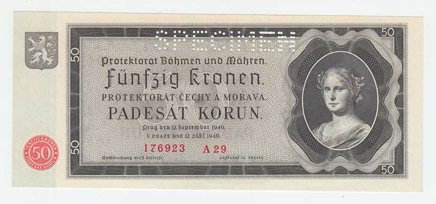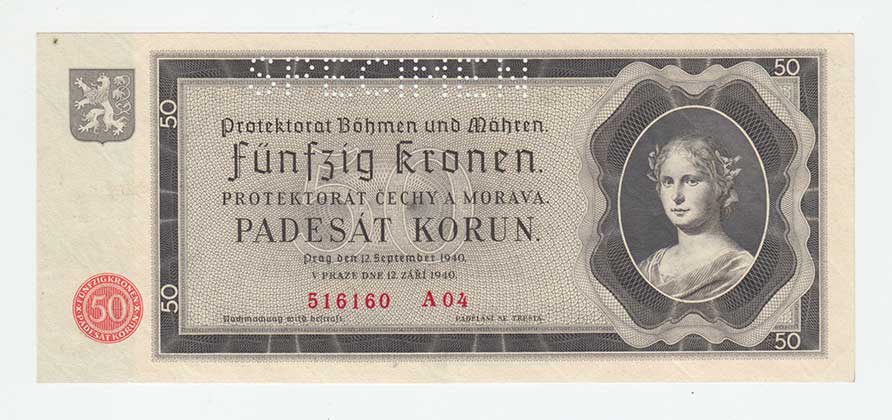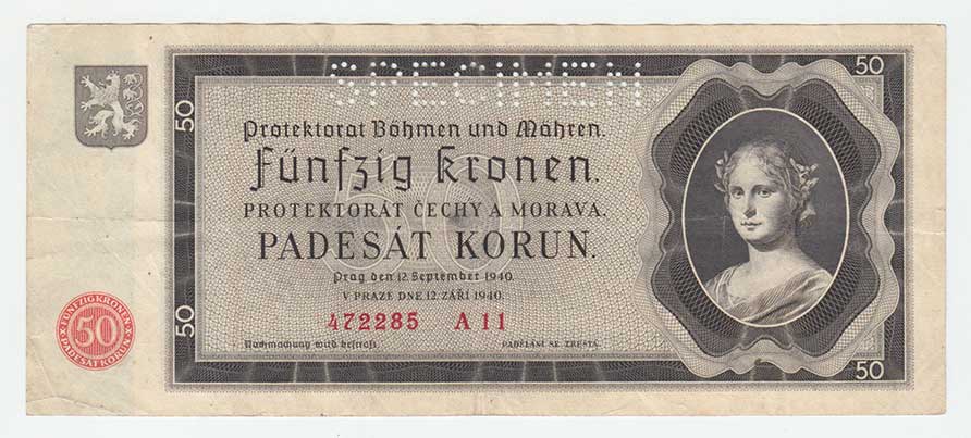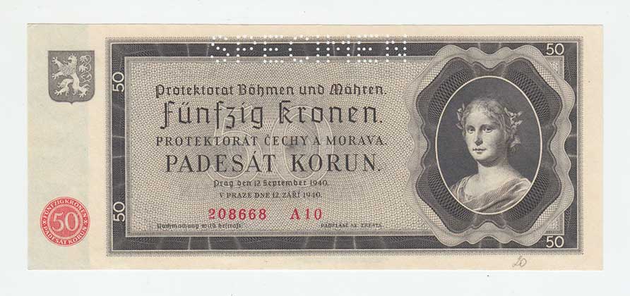 3290. 50 Koruna 1940, série Ik, BHK.50, He.53a.s1, nahoře