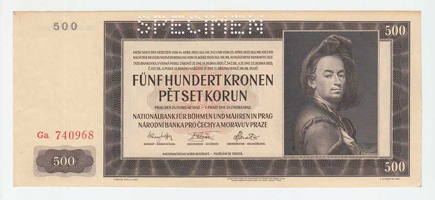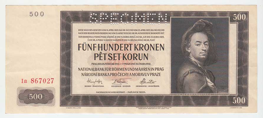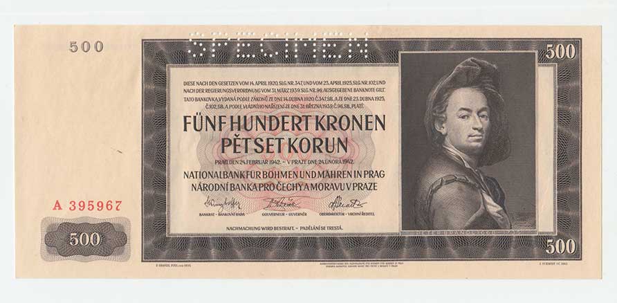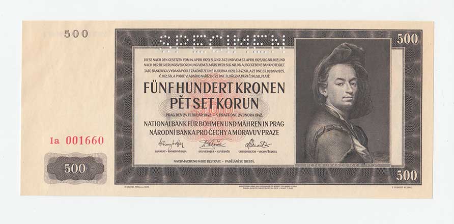 3229. 500 Koruna 1942 - 1.vyd.- série A, BHK.35, He.37a.s1,