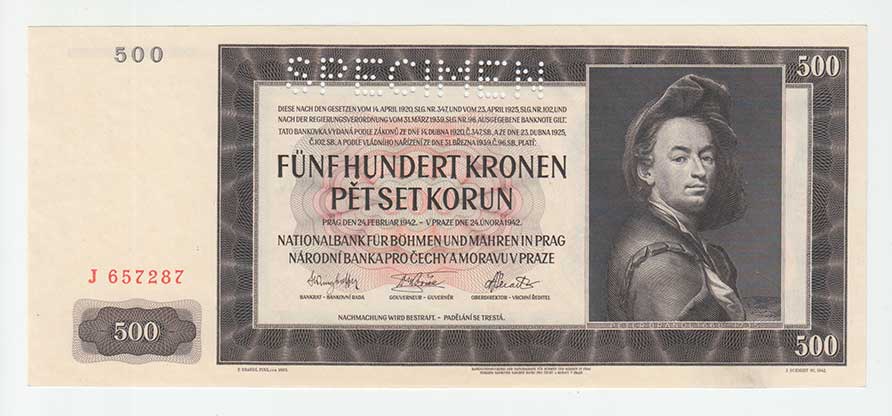 3231. 500 Koruna 1942 - 1.vyd.- série J, BHK.35, He.37a.s1,