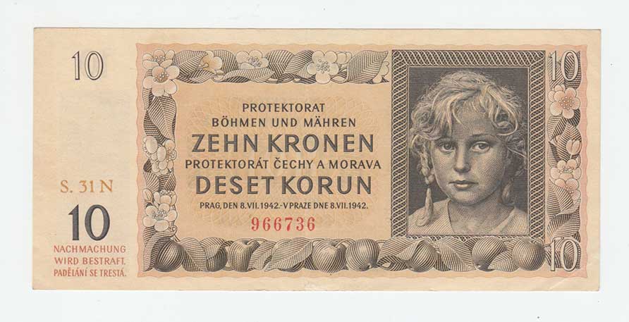 3239. 10 Koruna 1942 - série 45A, BHK.37a, He.39a,