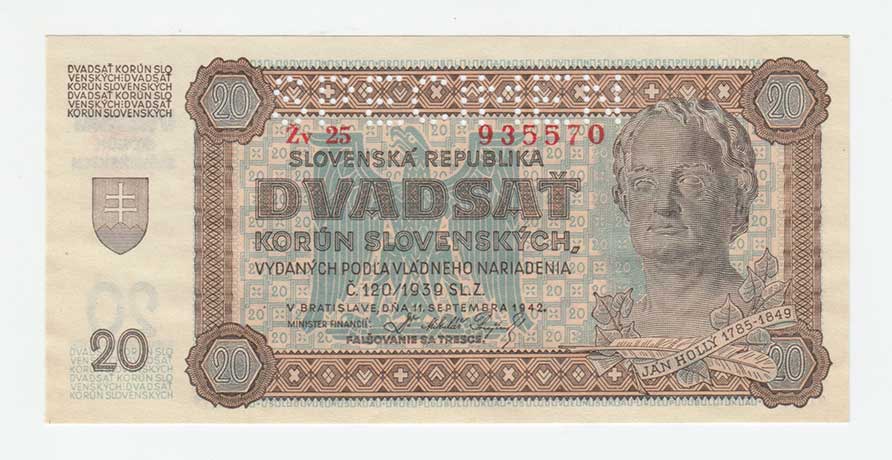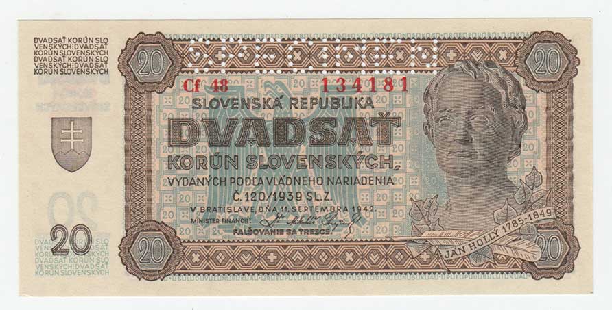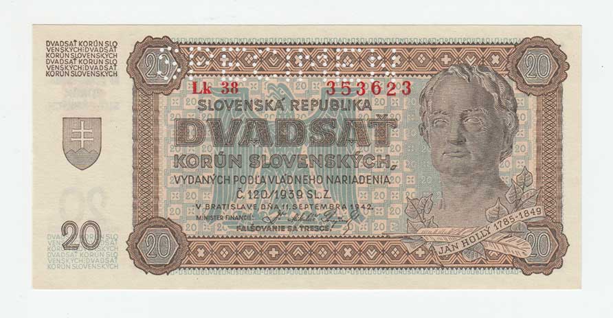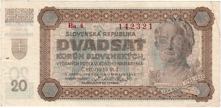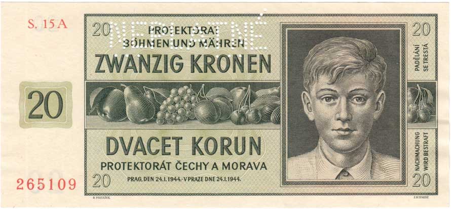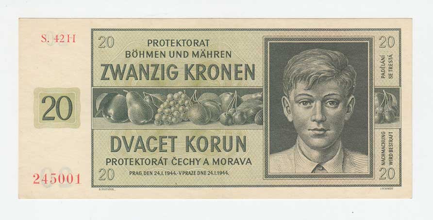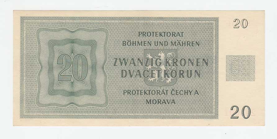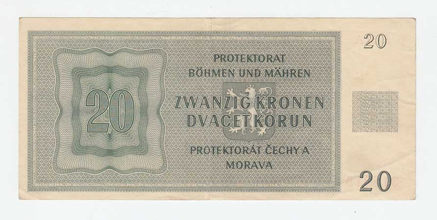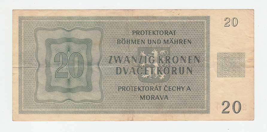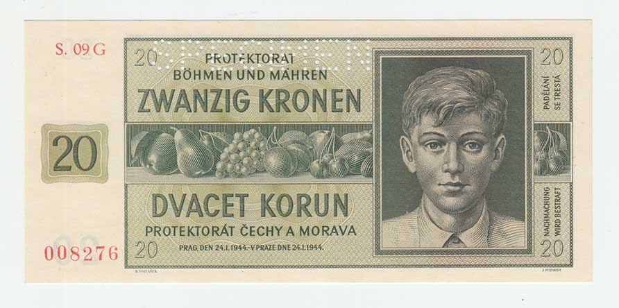 3261. 20 Koruna 1944 - série 42H, BHK.40c, He.43c,