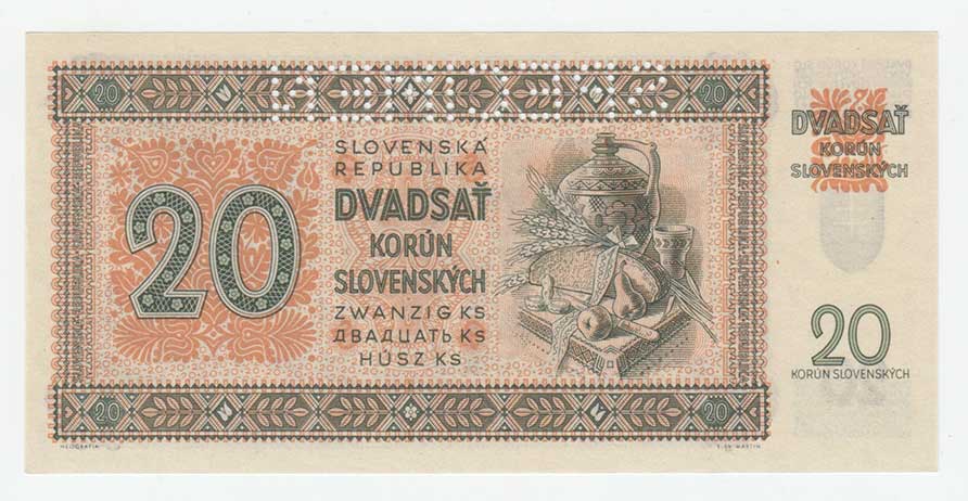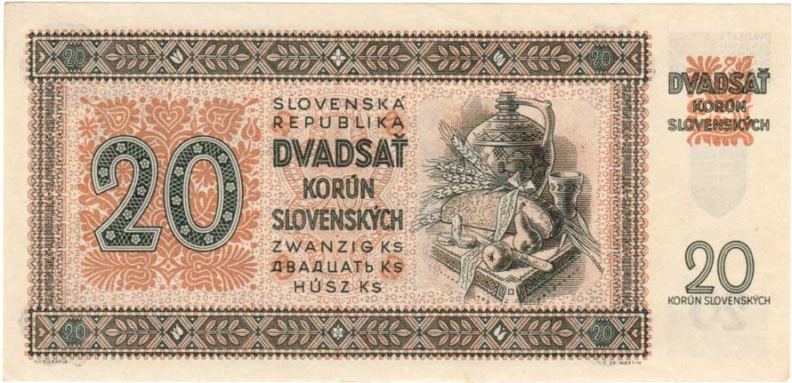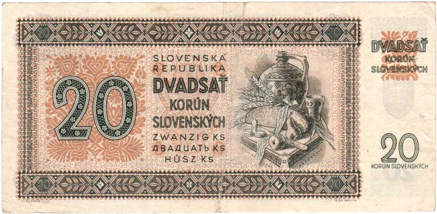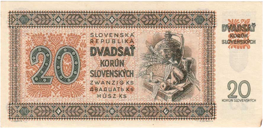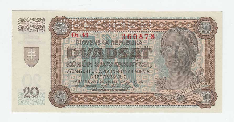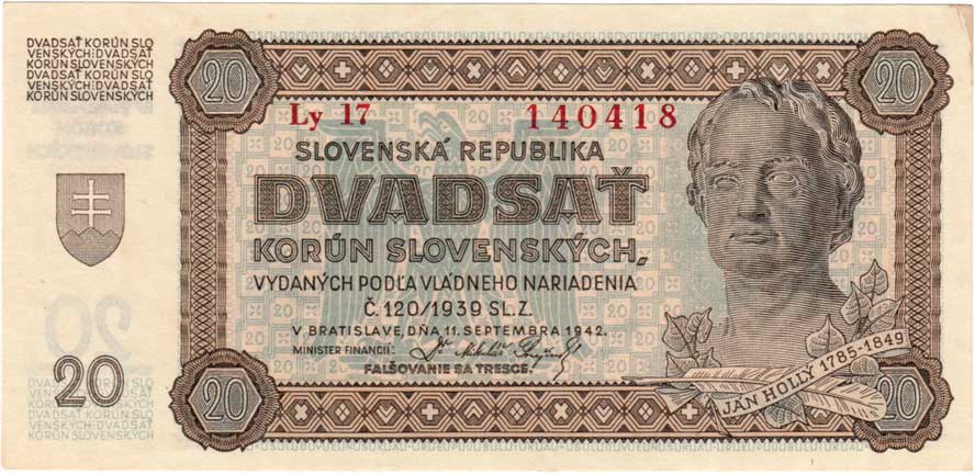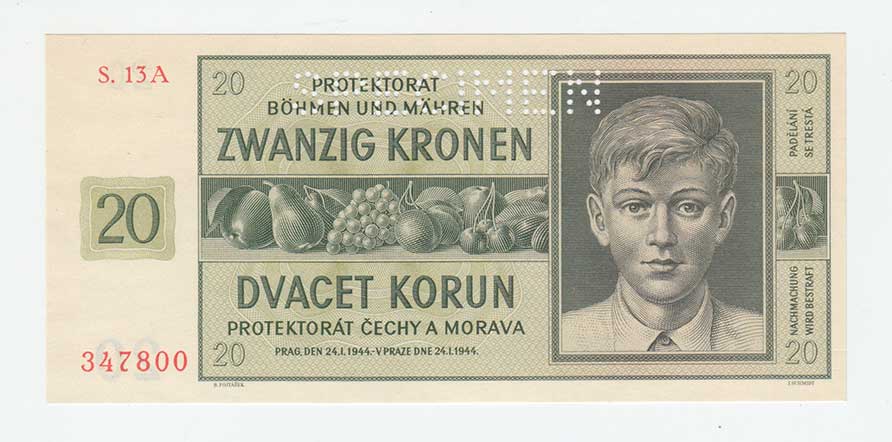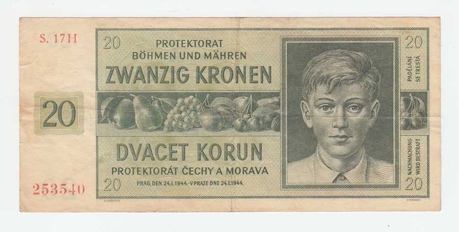3260. 20 Koruna 1944 - série 17H, BHK.40c, He.43c,
