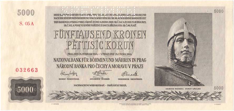 3263. 5000 Koruna 1944 - série 05A, BHK.41, He.44a.s1,