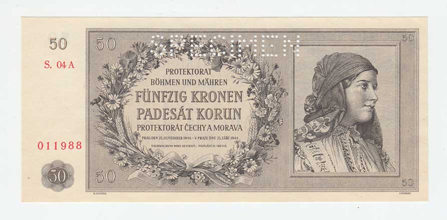 3268. 50 Koruna 1944 - série 04A, BHK.42, He.45a.s1,