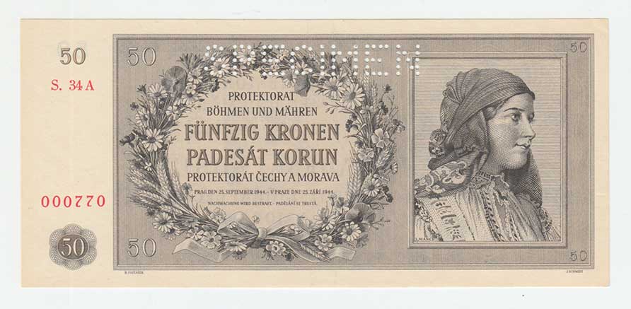 3270. 50 Koruna 1944 - série 33A, BHK.42, He.45a.s1,