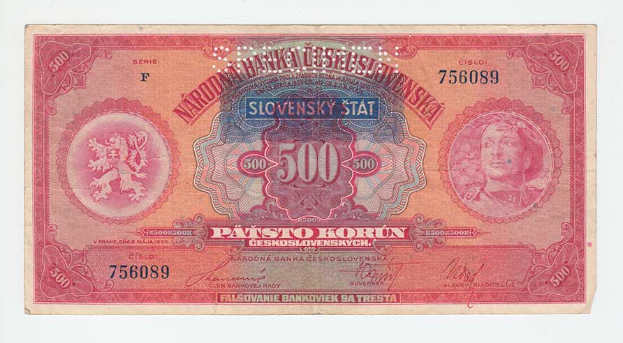 3273. 500 Koruna 1929 - přetisk, sér. F, BHK.44, He.47a.s1,
