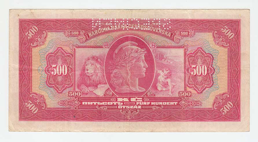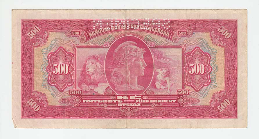 nahoře perforace "SPECIMEN"