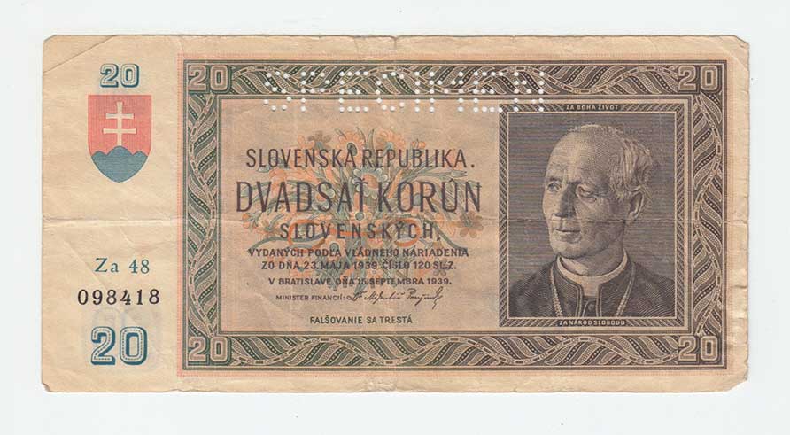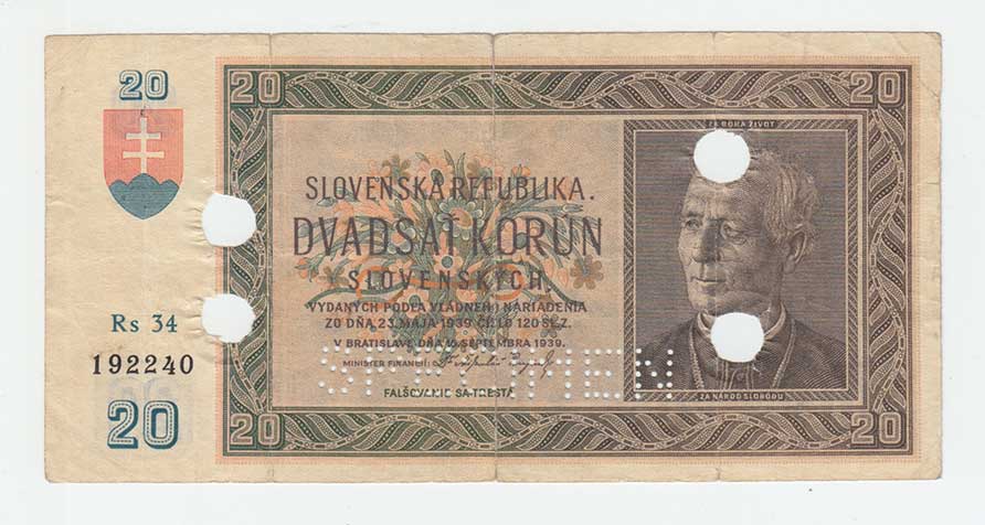 3280. 20 Koruna 1939, série Rs34, BHK.47b, He.50a2.s3,