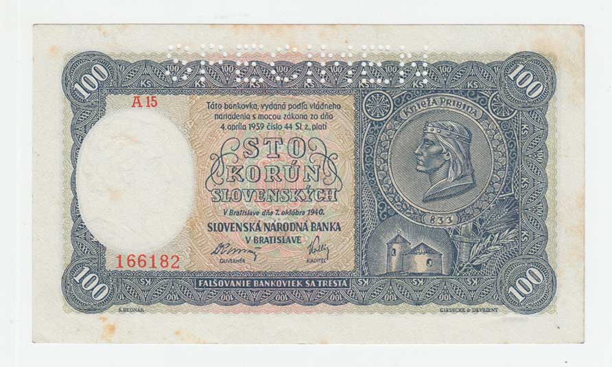 3284. 100 Koruna 1940, 1.vyd., série A15, BHK.48b,