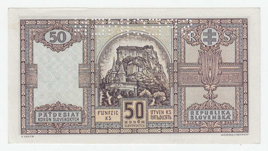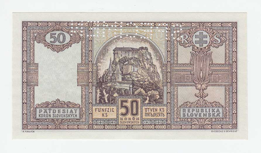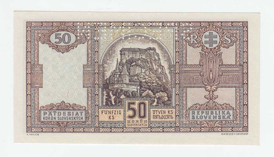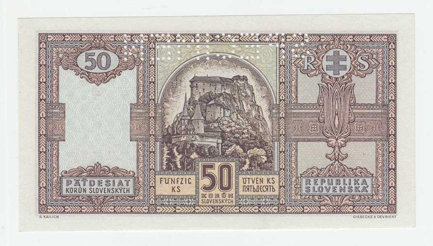 bankovní vzor, perforace 1x svisle "SPECIMEN",