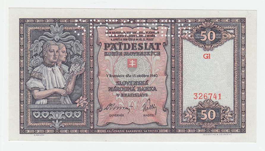 3289. 50 Koruna 1940, série Gl, BHK.50, He.53a.s1, nahoře
