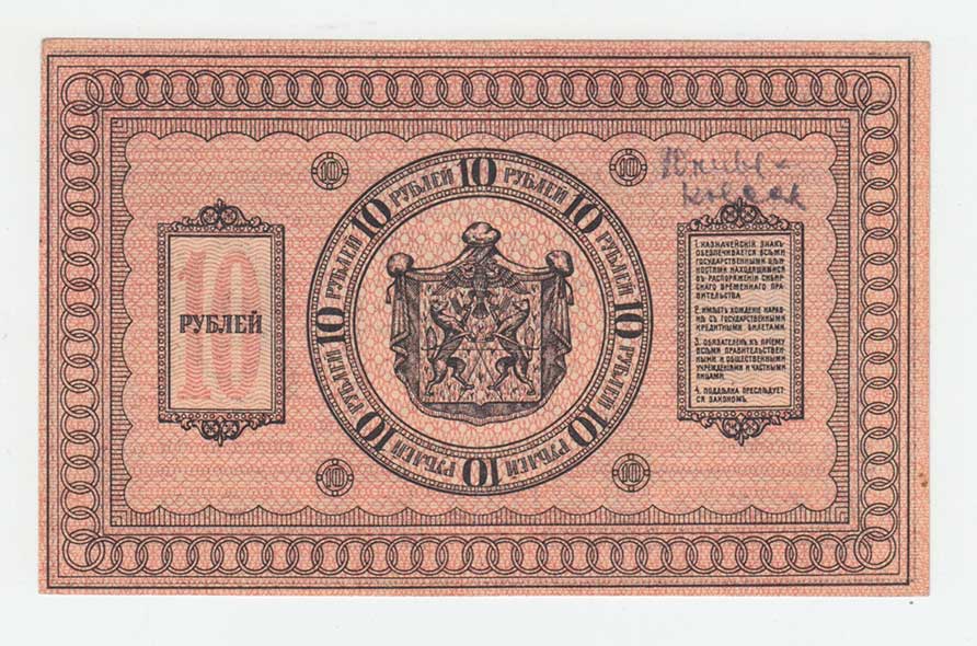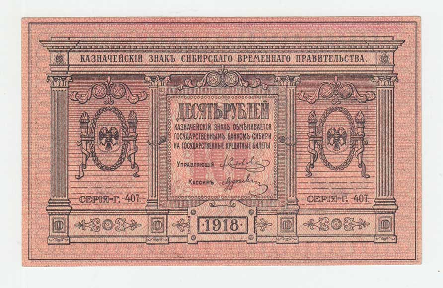 3802. 10 Rubl 1918, Pick.S818 - Sibiřská prozatimní vláda