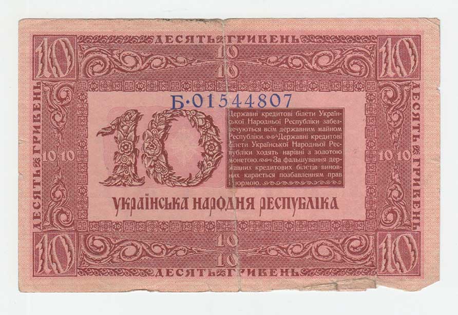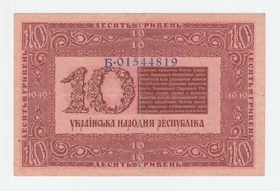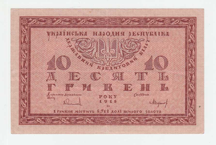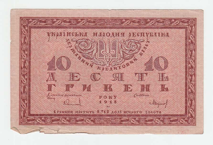 3830. 10 Hřiven 1918, Pick.21b - série B, otřepený okraj,