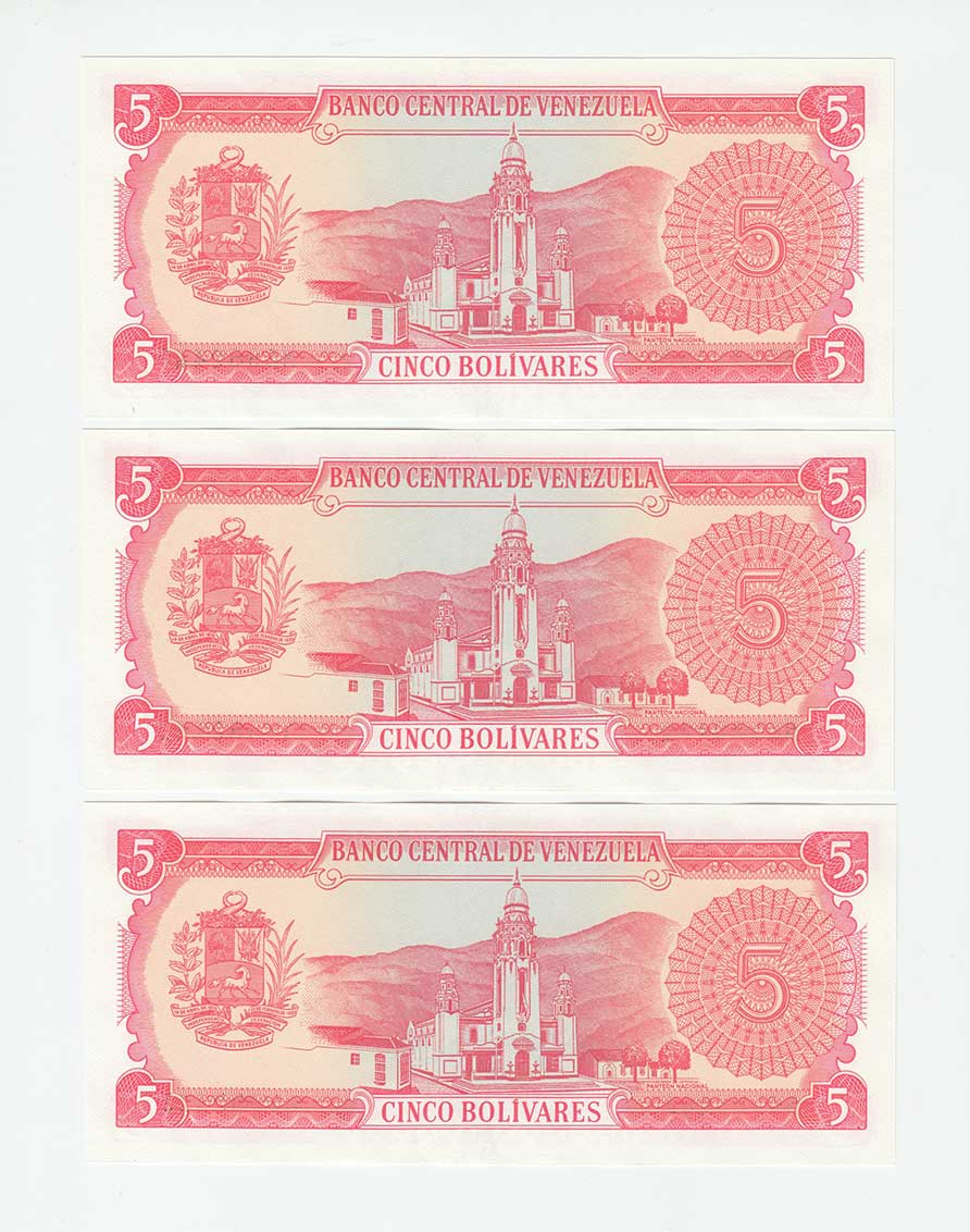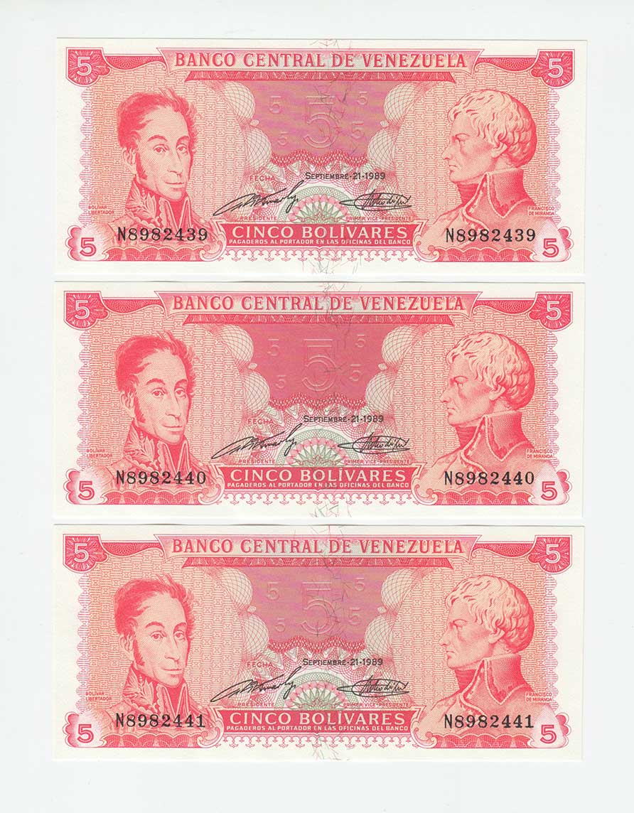 3833. 5 Bolivares 21.9.1989, Pick.70a, tři následující