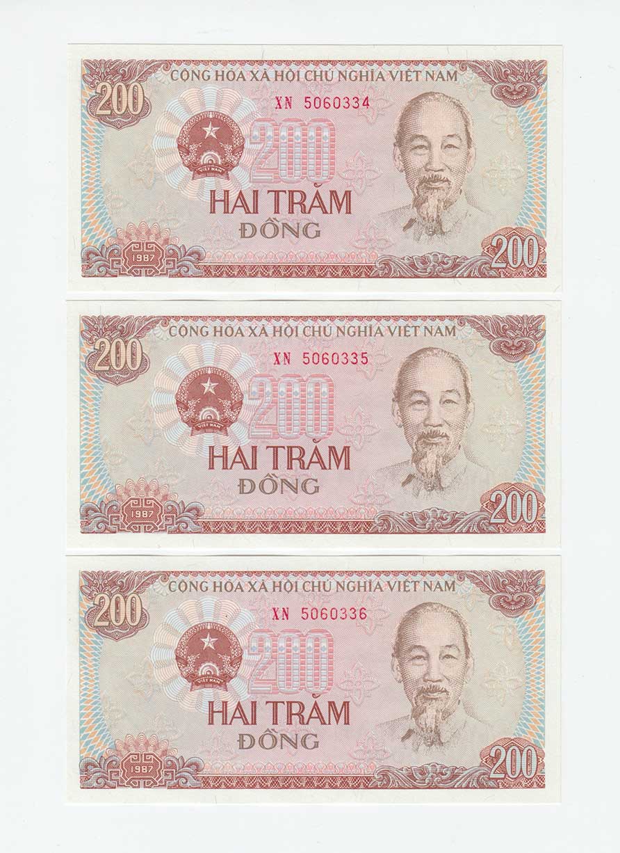 3834. 200 Dong 1987, P.100a, tři následující čísla N 30,- --.-