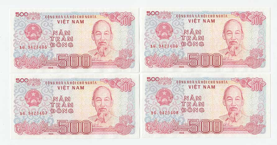 3835. 500 Dong 1988 (1989), P.101a, čtyři následující čísla N 40,- --.-