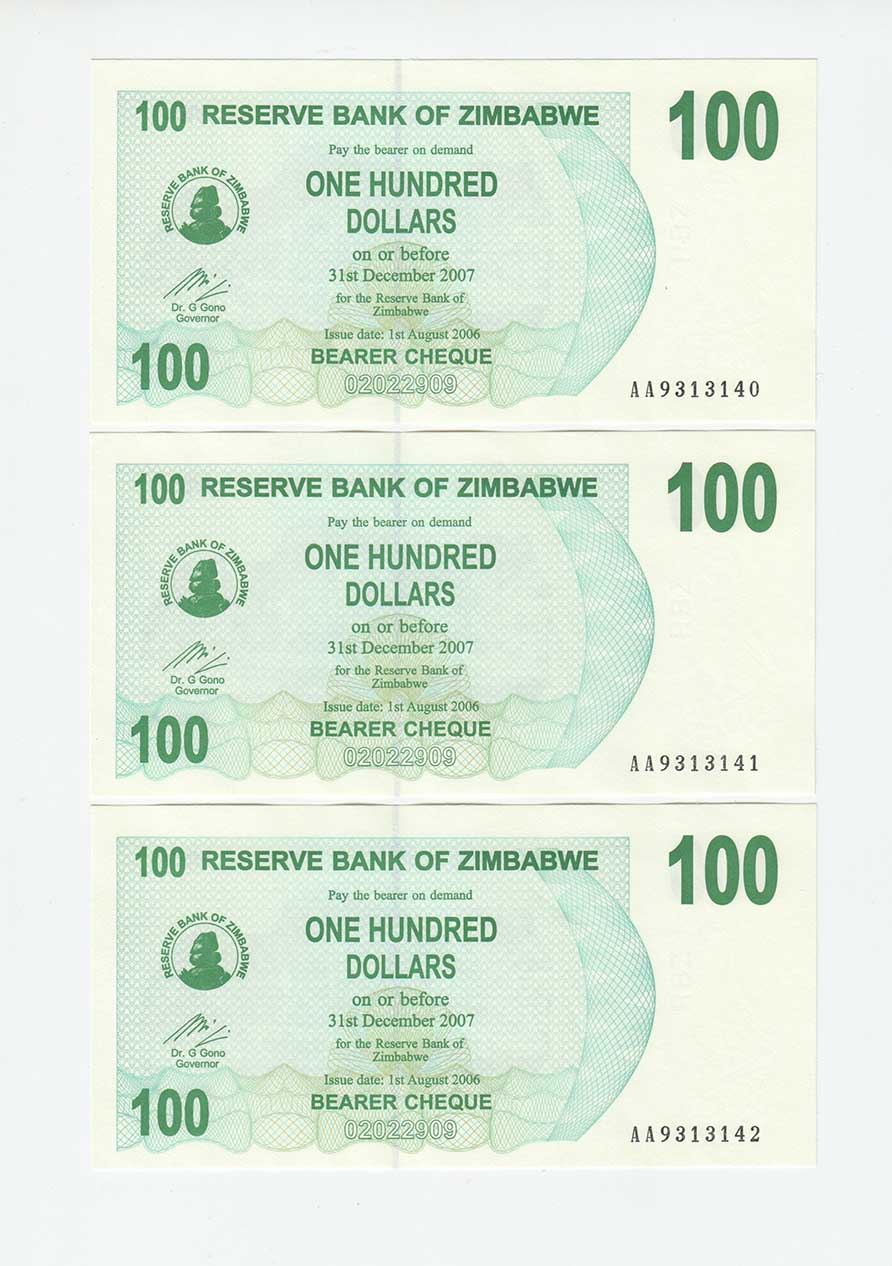 3842. 100 Dollars 1.8.2006, Pick.42, tři následující čísla N 30,- 44,-