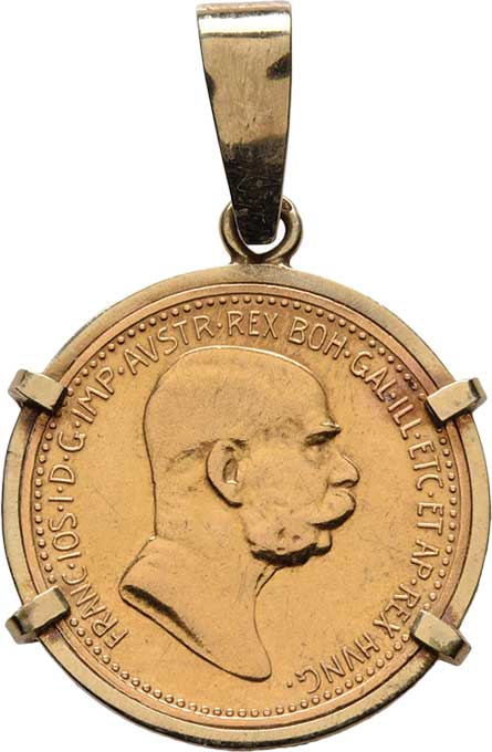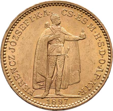 | 97. | 10 Koruna 1894 KB (Au900, cca 3.39g), vsazena