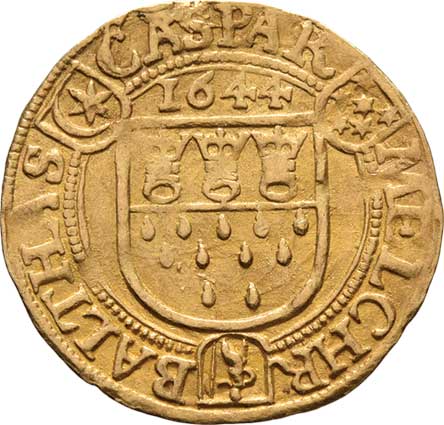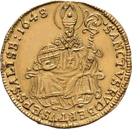 | 135. | Dukát 1648, Sv.Rupert, opis / znak, opis, Zot.1363,