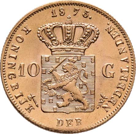 | 192. | 10 Gulden 1875, Utrecht, KM.105 (Au900), 6.712g | 0/0 | 12000,- | 16500,- |
