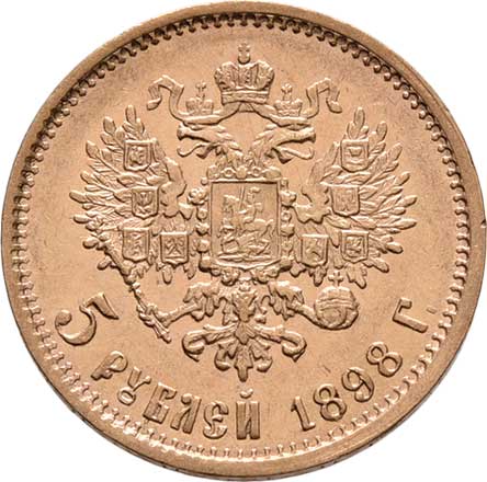 | 209. | 5 Rubl 1898 AG, Petrohrad, Y.62 (Au900), 4.286g,
