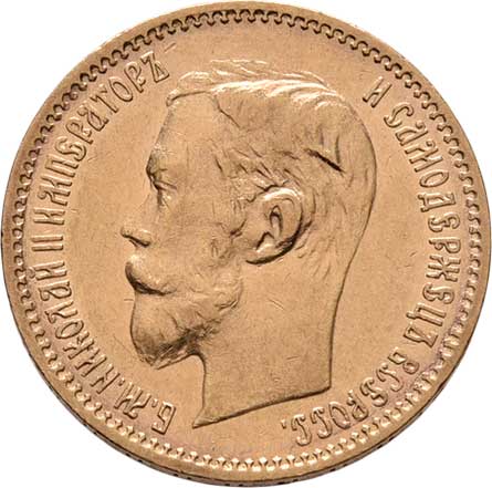 | 211. | 5 Rubl 1900 FZ, Petrohrad, Y.62 (Au900), 4.288g,