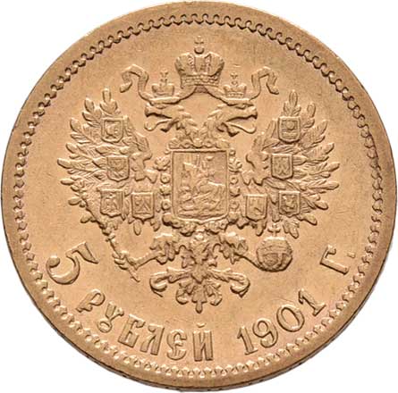 | 212. | 5 Rubl 1901 FZ, Petrohrad, Y.62 (Au900), 4.275g,