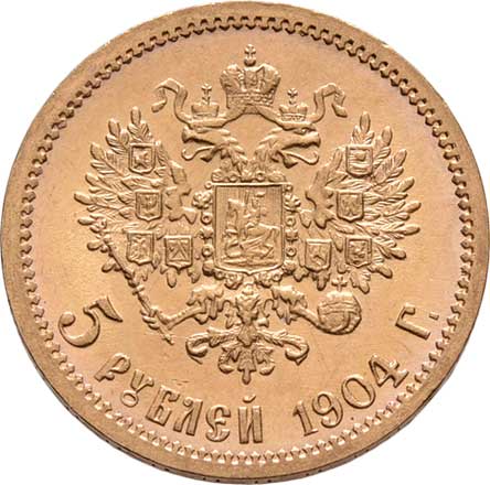 | 214. | 5 Rubl 1904 AR, Petrohrad, Y.62 (Au900), 4.300g,
