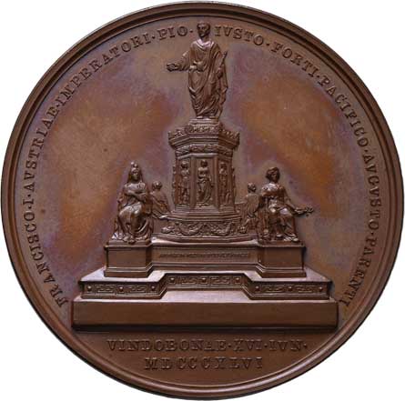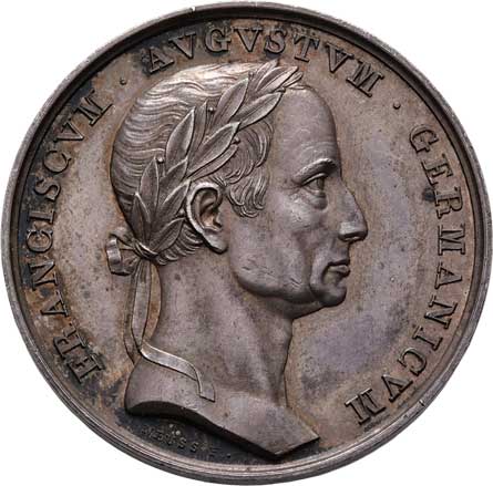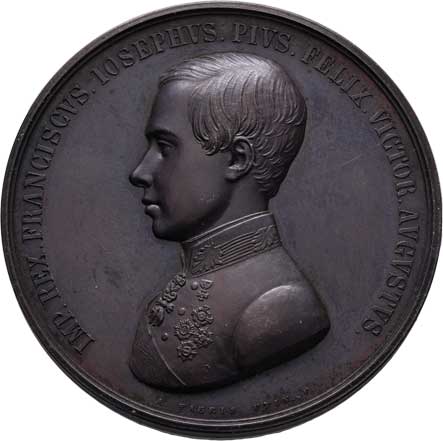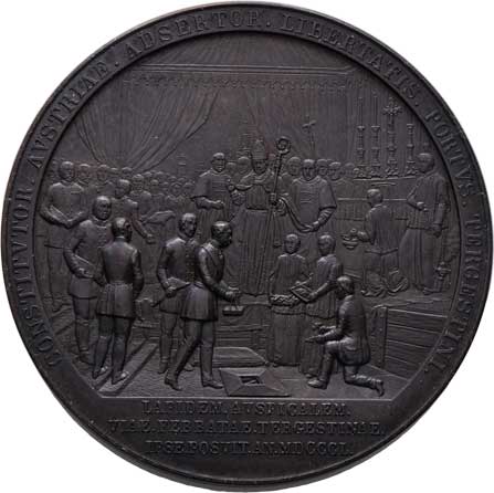 poprsí císaře zleva, opis /slavnostní scéna v Terstu,