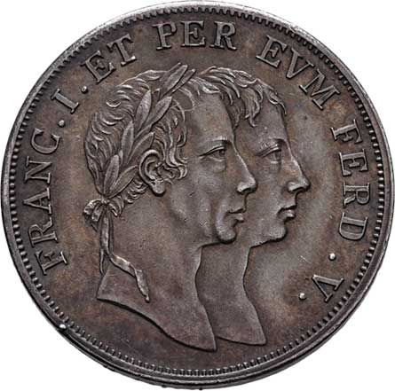 dvojportrét Františka II. a Ferdinanda, opis/ koruna,