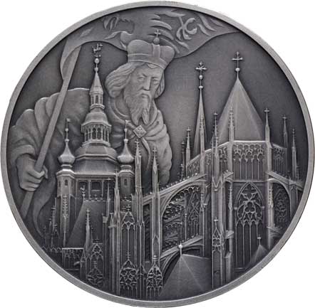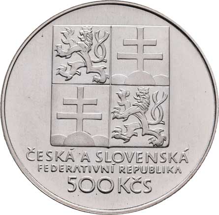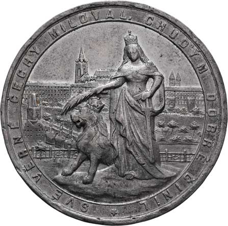 mírně zleva, opis / Čechie se lvem, Pražský hrad,