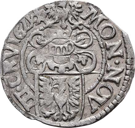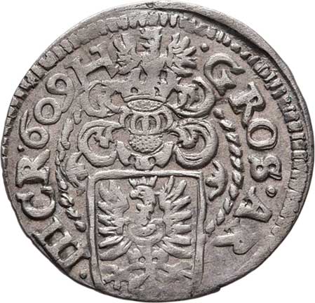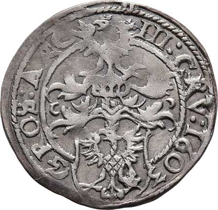 622. Početní groš 1592, znak, opis/ 5-řád.nápis v kartuši,