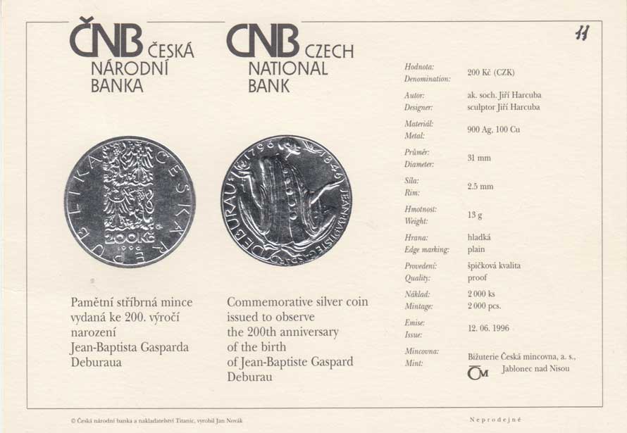 678. 200 Koruna 1996 - 200 let narození Jeana G. Deburaua,