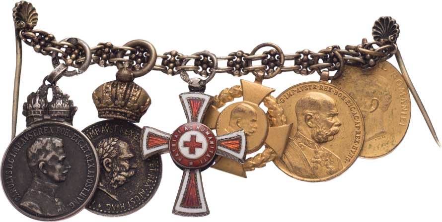 II.třídy, 2x Signum Laudis, Jubilejní kříž 1908, pamětní medaile 1898, rumunská medaile 40 let vlády |