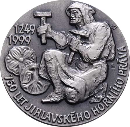 znakem, opis / horník a dítě, v pozadí město a hory, nápis, Sign., patin. Ag, 50mm, 44.878g, původní etue |