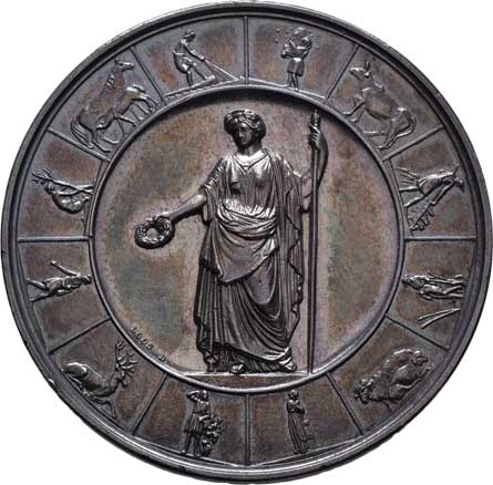Ceres se symboly úrody, nápis/ symb.moci a bohatství, písmo, Sign., bronz 62 mm, 90.259g, nep.skvrnky, pat. |