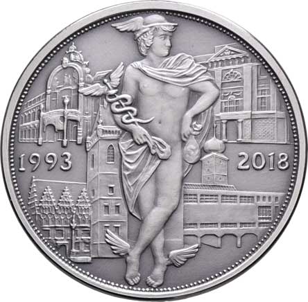 portrét mírně zprava, opis / Merkur, čtyři budovy, vročení, Sign., Ag999, 50mm, 39.830g, 50ks, etue RR! |