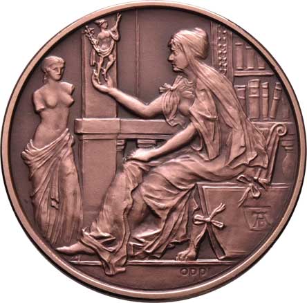 portrét mírně zprava, opis / personif. sběratelství, Sign., patinovaná měď, 50mm, 53.282g, 10ks, etue RRR! |