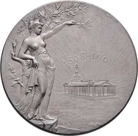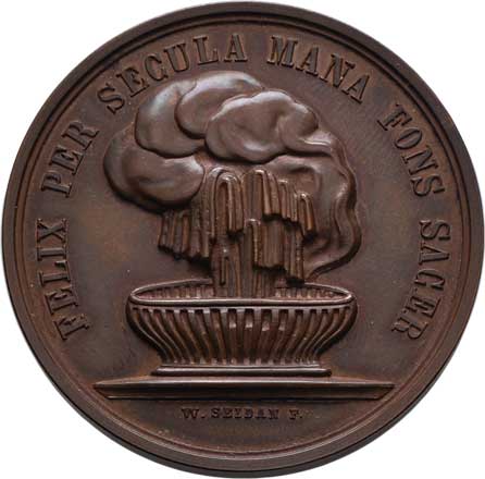 zakladatelů, něm. nápis / žena, kolonáda, vročení, Sign., patin. postř. bronz 40mm, 25.406g, pův. etue |