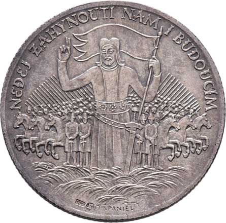 scéna zavraždění, opis/ sv.Václav v čele blan.rytířů, opis, Sign., Ag987, 30mm, 10.042g, nep.rysky, patina |
