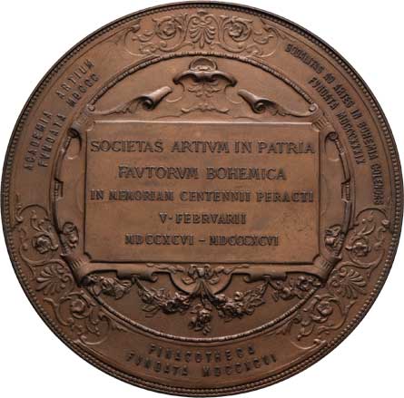 poprsí zleva, opis/ 11-řádkový nápis v dubovém věnci, Sign., bronz 67mm, 117.896g, Haus.7809, nep.hr., pat. |
