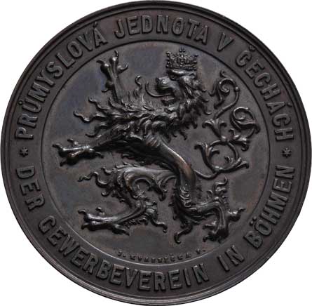 český lev, dvojitý opis / česko-němec. nápis ve věnci Sign., bronz 42mm, 37.570g !, jako ŠFP.6c, nep.skvr. |
