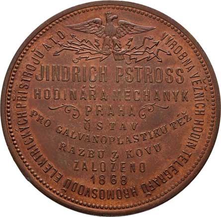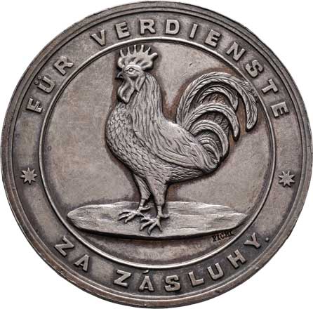 český lev, dvojitý opis / kohout zleva, opis, Sign., měď 43mm, 38.687g, ŠFP.13b, uděleno 11ks, nep.hr. RR! |