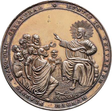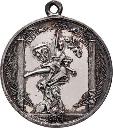 putti na oslu, terč, opis / vročení a 7-řádkový nápis ve věnci, Sign.OH, Nepunc., Ag 26mm, 5.863g, etue |