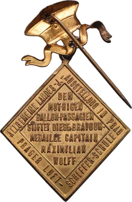 Prahou, 1891 / 7-řádkový něm. nápis a opis, Nesign., mosazná klipa 39x42 mm se závěs.jehlicí, ŠFP.65a RR! |