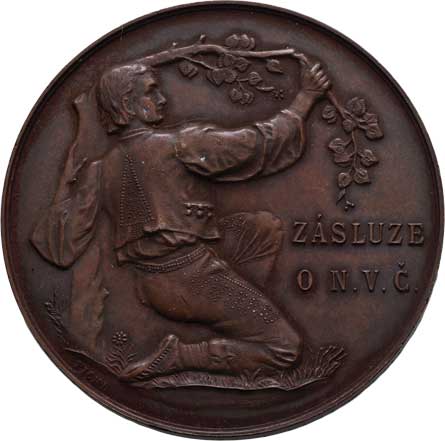 znak, věnec, český opis / stojící postava, něm. opis, Sign., bronz 45mm, 44.780g, udělen 1ks, ŠFP.14a RR! |
