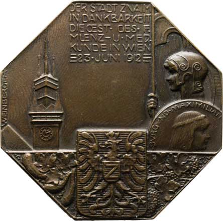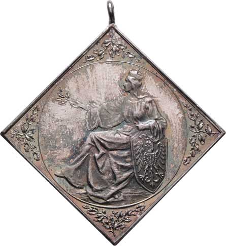 zprava, německý opis / 7-řádkový nápis ve věnci, Sign.Christlbauer, Ag 44mm, 27.303g, patina, pův.etue |