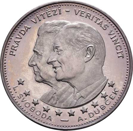 moto Pravda vyděsí, vročení, opis / jména vydavatelů, velké "PF", Sign., mosaz 30mm, 12.217g, raženo 49ks |